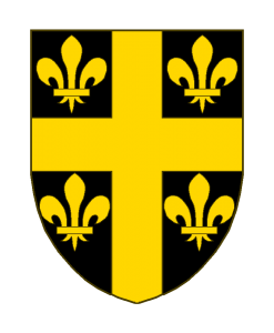 De sable à la croix d’or accompagnée de 4 fleurs de lis d’or.