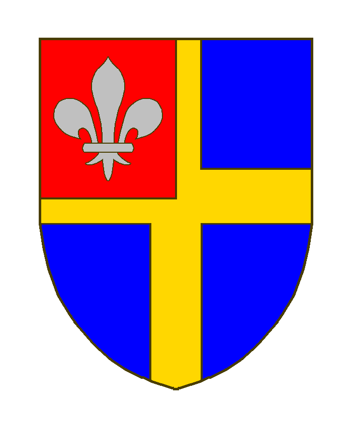 D’azur à la croix d’or au franc-quartier de gueules à la fleur de lis d’argent.