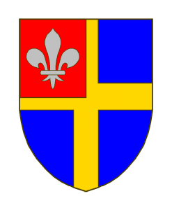 D’azur à la croix d’or au franc-quartier de gueules à la fleur de lis d’argent.