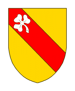 D’or à la bande de gueules, chargé en chef d’un trèfle posé dans le sens de la bande.