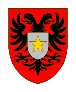 De gueules à l’aigle éployée de sable, chargé en coeur d’un écusson d’argent à l’étoile d’or.