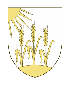 Trois épis terrassées, accompagnées d’un soleil mouvant du coin dextre supérieur de l’écu.