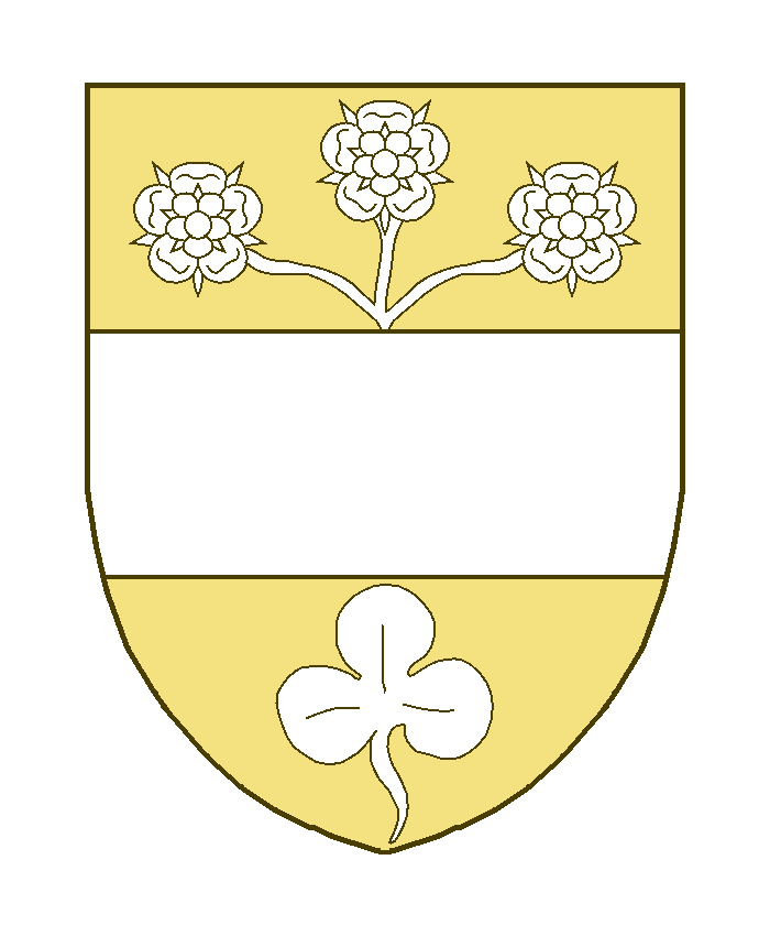 Une fasce accompagnée en chef d’un plant de 3 roses tigées, les tiges se réunissant et mouvant de la fasce, en pointe d’un trèfle.