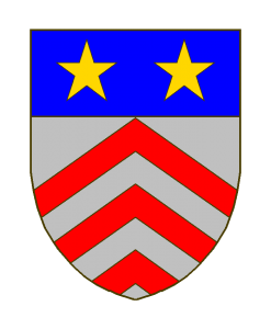 Baudoche – variante étoiles Sizes: 150 × 150 / 247 × 300 / 700 × 850 Baudoche - variante étoiles Armes: D’argent à 3 chevrons de gueules (ou chevronné de 10 pièces), au chef d’azur chargé de 2 étoiles d’or. Zitiert nach (Quelle): A.L. Seite 211