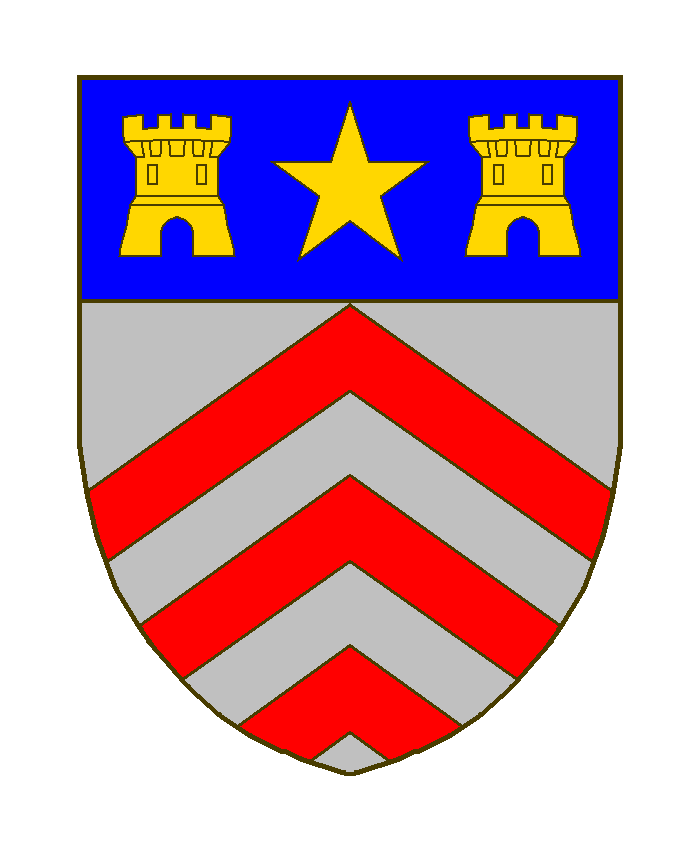 Baudoche – variante besant et tours Sizes: 150 × 150 / 247 × 300 / 700 × 850 Baudoche - variante besant et tours Armes: D’argent à 3 chevrons de gueules (ou chevronné de 10 pièces), au chef d’azur chargé d’un besant d’or, accosté de 2 tours du même. Zitiert nach (Quelle): A.L. Seite 211