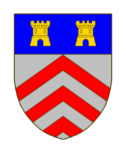 D’argent à 3 chevrons de gueules (ou chevronné de 10 pièces), au chef d’azur chargé de 2 tours d’or.