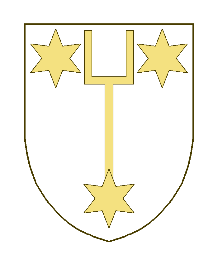 Un meuble en forme de fourche à deux dents posées en pal accosté en chef de deux étoiles (6) une troisième étoile brochant en pointe sur la tige du meuble.