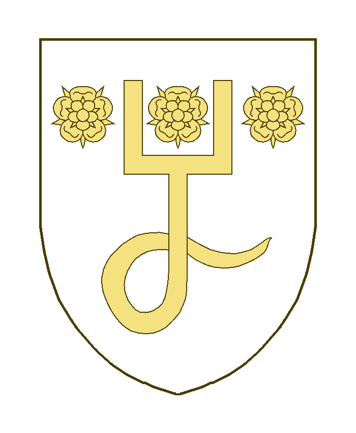 Un meuble en forme de fourche à deux dents posées en pal accompagné en chef de 3 roses posées en fasce celle du milieu entre les deux branches de la «fourche», la tige recourbée et repassant en croix. (Reinach 2177).