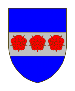 D’azur à la fasce d’argent chargé de trois roses de gueules.