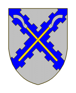D’argent au sautoir bretessé d’azur chargé de deux houlettes d’argent, emmanchées d’or, posées en sautoir.