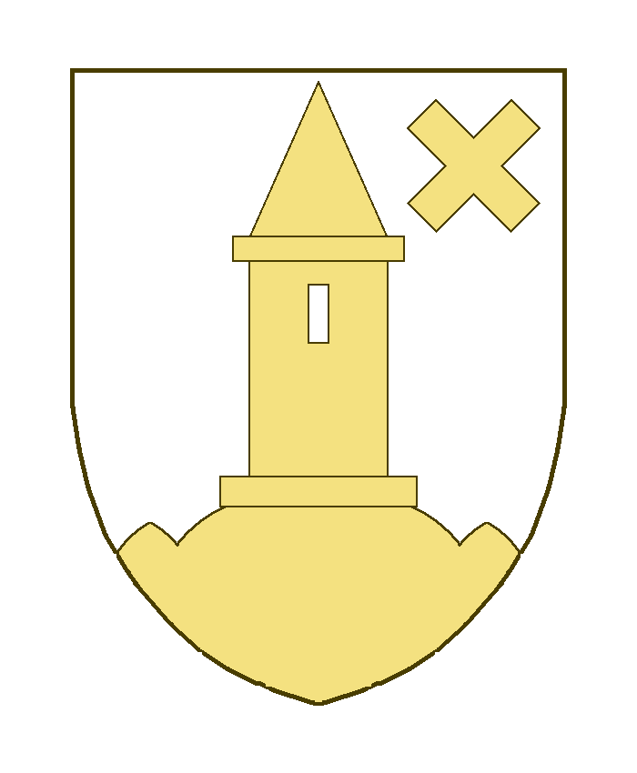Une tour à toit pointu, posée sur un mont de trois coupeaux, et accompagnée en chef, à sénestre, d’un flanchis.