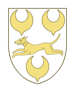 Un lévrier élancé, accompagné de trois feuilles de tilleul renversées sans tiges (ou feuilles de nénuphar), posées 2-1.