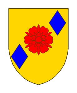 D’or à une rose de gueules à six feuilles en coeur, accompagnée de deux losanges d’azur, l’un en chef, à sénestre, l’autre en pointe, à dextre.