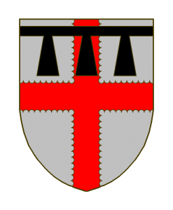 D’argent à la croix engreslée de gueules, au lambel de sable brochant en chef.
