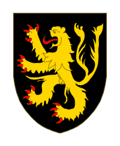 De sable au lion d’or, armé et lampassé de gueules, à la queue fourchue.