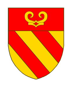 D’or à deux bandes de gueules, au chef du même, chargé d’un briquet de Bourgogne d’or.