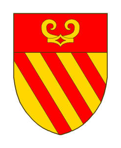 D’or à trois bandes de gueules, au chef du même, chargé d’un briquet de Bourgogne d’or.