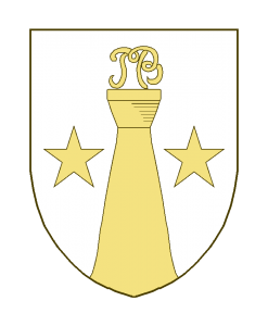 Une colonne, mouvant de la pointe, supportant unmonogramme M.B. et accostée de deux étoiles à 5 rais.