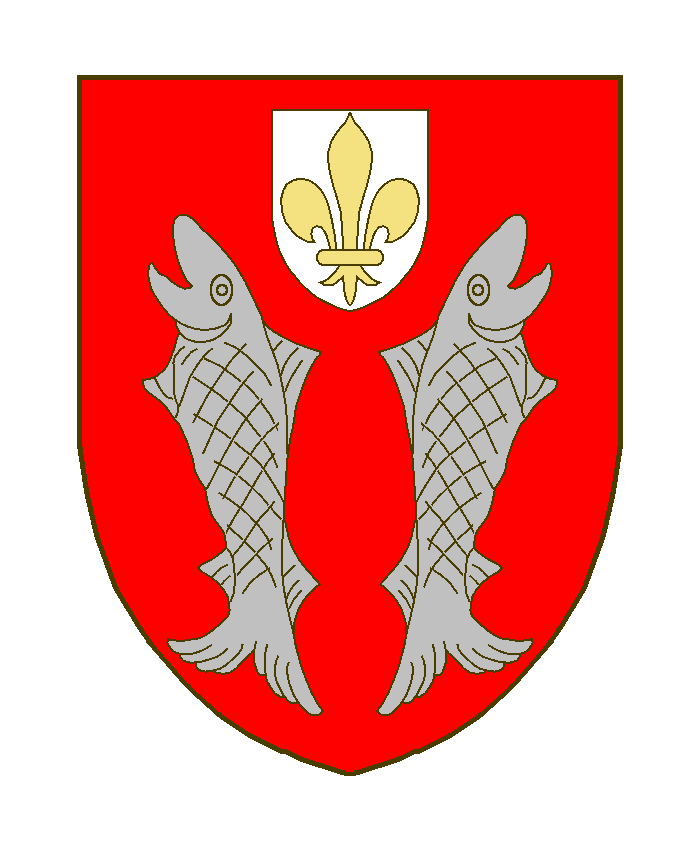 Blamont – brisure – 1 Sizes: 150 × 150 / 247 × 300 / 700 × 850 de Blamont - brisure - 1 Armes: De gueules à deux saumons adossés d’argent, accompagné en chef d’un écusson à fleur de lis en chef, Sources du Dr. Loutsch: (des R.). Zitiert nach (Quelle): A.L. Seite 238