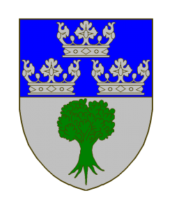 Coupé d’azur à trois couronnes mal ordonnées d’argent, et d’argent à l’arbre de sinople.