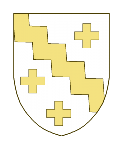 Une bande vivrée, accompagnée de trois croisettes, une en chef, deux en pointe.