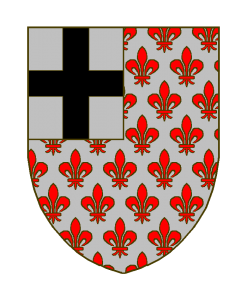 D’argent semé de fleurs de lis de gueules, au franc-quartier d’argent à la croix de sable.