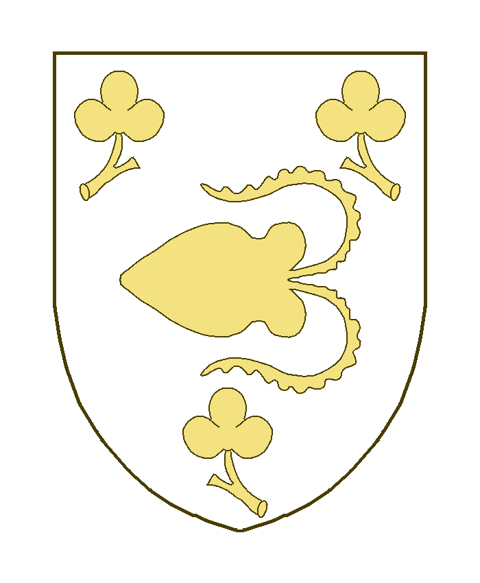 Une seiche posée en fasce, accompagnée de trois trèfles, chacun issant d’une petit branche.