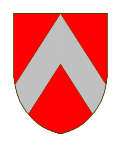Un buste d’homme habillé aux armes, au rabat d’argent, la tête ceinte d’un cordon flottant de gueules.
