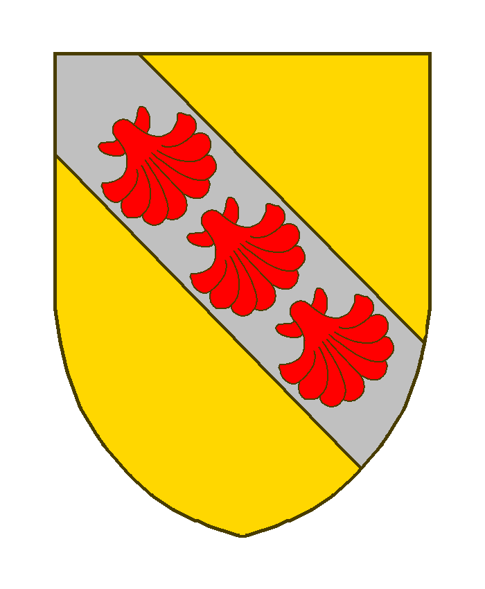 D’or à la bande d’argent chargé de trois coquilles de gueules.