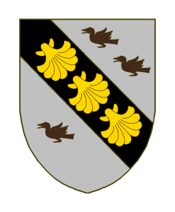 D’argent à la bande de sable, chargé de trois coquilles d’or, accompagnée de trois perdrix volantes, deux en chef, une en pointe.