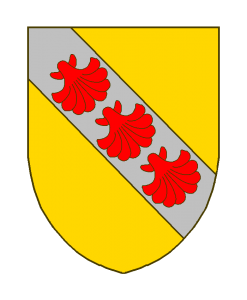 D’or à la bande d’argent chargé de trois coquilles de gueules.