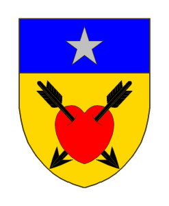 Comme ci-dessus [D’or au coeur de gueules percé de deux flèches de sable posées en sautoir, les pointes en bas.] , au chef (D’azur?) chargé d’une étoile à 5 rais (D’or ou d’argent?).