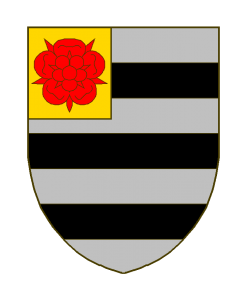 D’argent à trois fasces de sable, au franc-quartier d’or à une rose de gueules.