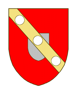 De gueules à l’écusson d’argent posé en abîme, brisé par Une cotice chargé de trois besants, brochant.