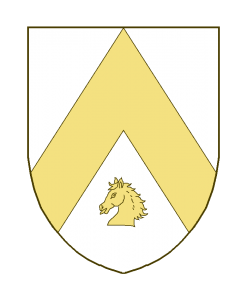 Un chevron, accompagné en pointe d’une tête de cheval (ou de licorne).