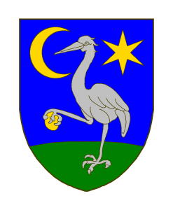 D’azur à la grue d’argent, sa vigilance d’or, posée sur une terrasse de sinople, accompagnée en chef à dextre d’un croissant contourné d’or, à sénestre d’une étoile à six rais de même.