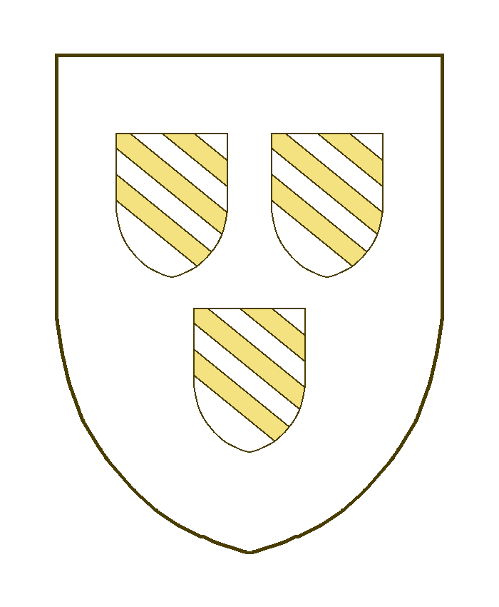 Trois écussons, 2 – 1, chacun à trois bandes.