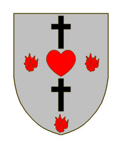 D’argent au coeur de gueules, soutenu et surmonté d’une croix de sable, accompagné de trois flammes de gueules, deux aux flancs, une en pointe.