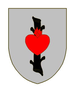 D’argent au coeur de gueules ardent, attaché à un poteau de sable.