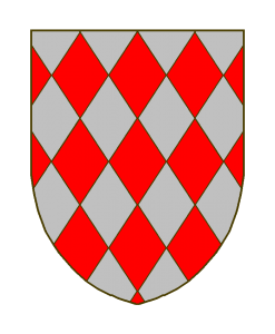 Une hermine au naturel posée entre un vol-banneret d’argent, le tout soutenu d’un chapeau de tournoi de gueules, retroussé d’un Losangé d’argent et de gueules.