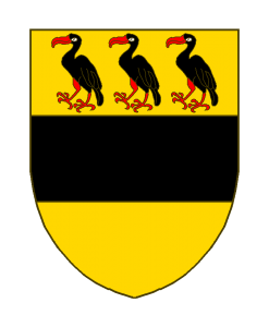 D’or à la fasce de sable, accompagnée de trois cormorans du même, becqués et membrés de gueules, rangés en chef.