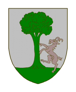D’argent à un arbre de sinople, sénestré d’un bouc au naturel rampant contre le fût de l’arbre, le tout soutenu d’une terrasse de sinople.