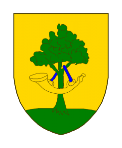 D’or à l’arbre de sinople terrassé du même, au cor d’or pendu aux branches par une lanière d’azur.