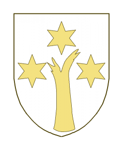 Un tronc à deux branches cassées, accompagné de trois étoiles à six rais, une en chef, deux aux flancs.