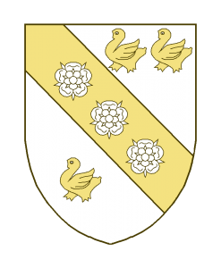 Une bande, chargé de trois roses, accompagnée de trois merlettes, deux en chef, une en pointe.