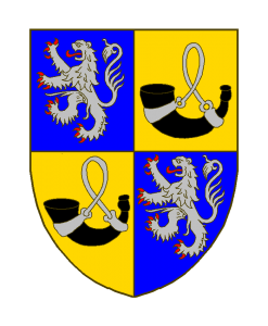 Écartelé: aux I et IV d’azur au lion rampant d’argent, armé et lampassé de gueules, aux II et III d’or au cor de sable virolé d’argent.