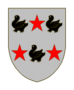 Une des merlettes, surmontée d’une des étoiles, le tout entre un vol d’argent.