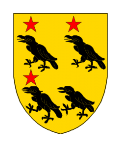 D’or à quatre corbins de sable, 2 – 2, accompagnés de trois étoiles de gueules, deux en franc-canton, la troisième à dextre de la fasce