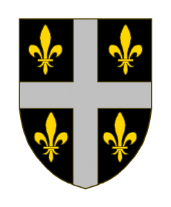 De sable à la croix d’argent, cantonnée de quatre fleurs de lis d’or.