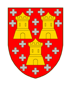 De gueules à trois tours d’or, à toit pointu, accompagnées d’un semé de croisettes d’argent.